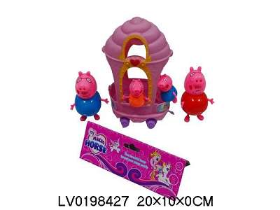 塑料一家四口佩佩猪带一个城堡推车