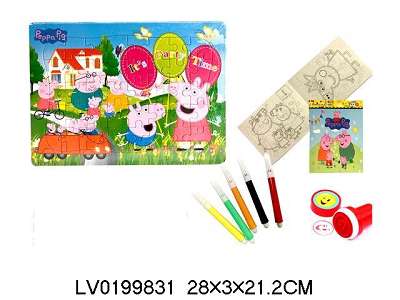 40片小猪佩琪涂色拼图+DIY涂色画册+5色画笔+印章