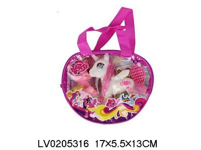 两只搪胶马宝丽带梳子带发夹带贴纸