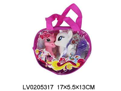 两只搪胶马宝丽带梳子带发夹带贴纸