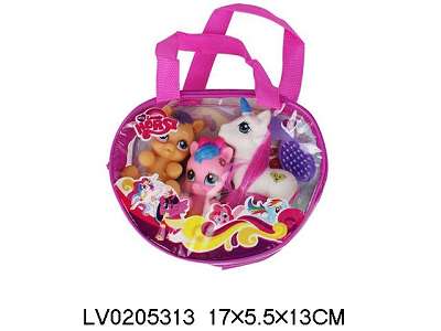 三只搪胶马宝丽带梳子带发夹带贴纸