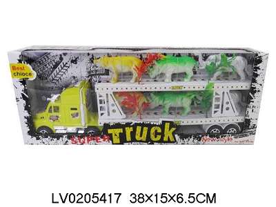 惯性双层拖头车载河马、犀牛、象+草(3色混装)
