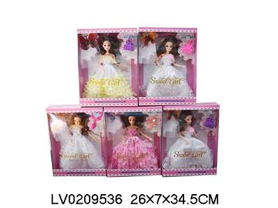 11.5寸3D真眼珠芭比大裙带蝴蝶鞋和手提包(5款)