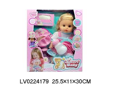 12寸12声活动眼喝水尿尿女娃娃吊带裙+盘匙+尿盆+奶瓶+尿裤