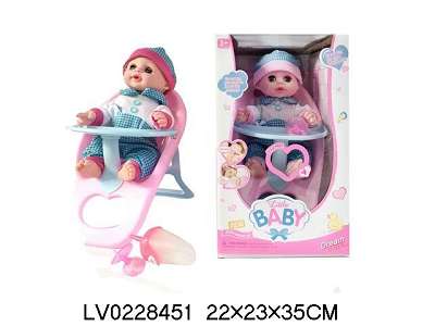 14寸4声公仔男娃娃配儿童餐椅会喝水会尿尿带音乐