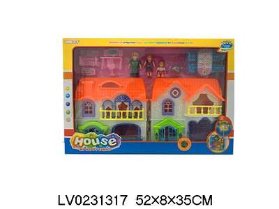 一家三口别墅套装 (带灯光门铃狗声用,七彩吊灯