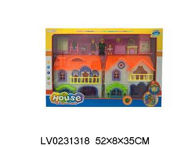 一家三口别墅套装 (带灯光门铃狗声,七彩吊灯)