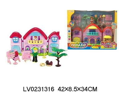 一家三口卡通别墅套装 (带灯光音乐/七彩吊灯)