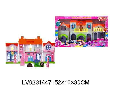 芭比别墅套装配楼梯 (带灯光门铃狗声,七彩吊灯)
