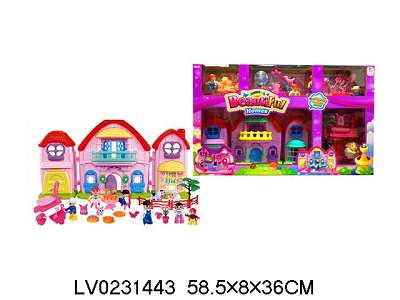 一家六口积木人别墅套装 (带灯光音乐、七彩吊灯)