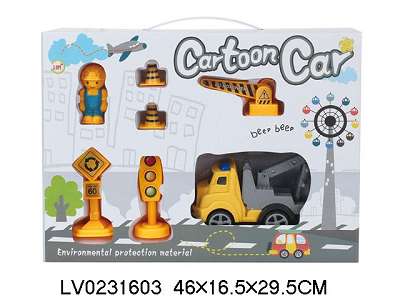 (配4只拆装卡通车)惯性卡通托头运输车