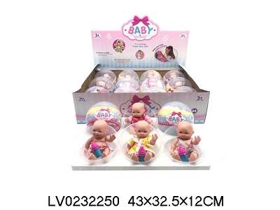 球蛋加12厘米搪胶真眼珠娃带奶瓶12PCS