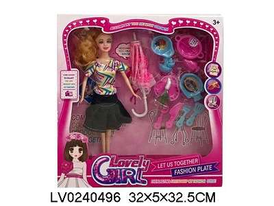 11.5寸实身时尚芭比 带烹饪吸塑配件、雨伞