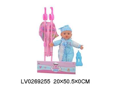 13寸娃娃带奶瓶塑料推车十声IC 包电