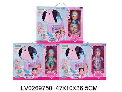 10寸搪胶表情娃配摇床枕头被子3款