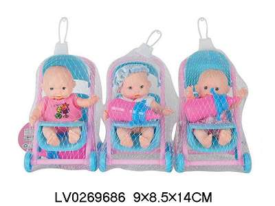 5.5寸搪胶表情娃配推车奶瓶3款