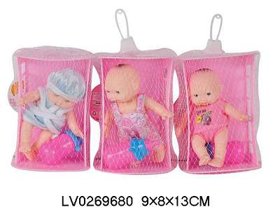 5.5寸搪胶表情娃配睡床奶瓶3款