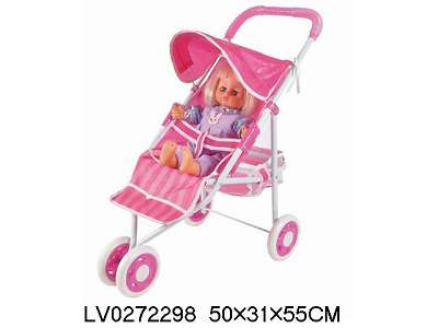 16"4声填棉公仔+婴儿遮阳手推车(EVA轮)包电