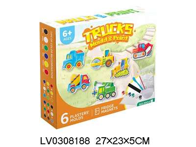DIY石膏彩绘玩具冰箱贴-工程车 小盒