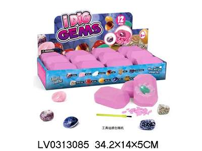 考古挖掘—宝石 12只/盒 原矿水晶石(打磨光滑) 配单支双头工具
