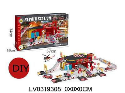 合金消防停车场修理厂套装(配2合金车)