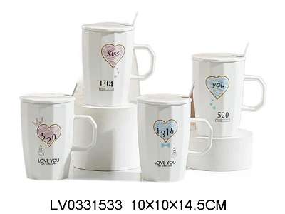 420ml 520·1314十二角陶瓷杯带盖勺