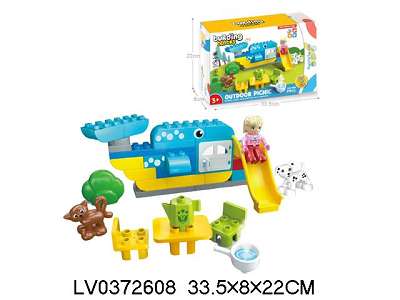 户外游乐场野餐过家家鲸鱼滑梯大颗粒积木兼容乐高DIY拼搭小场景益智积木男孩女孩玩具(37PCS)