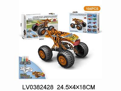 金属积木拼装大脚车 虎鲨涂鸦拼搭双重玩法 104pcs