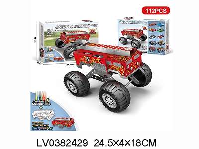 金属积木拼装大脚车 消防车涂鸦拼搭双重玩法 112pcs