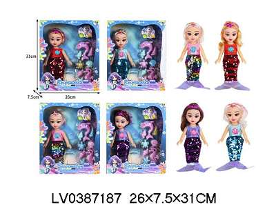 10寸空身时尚珠片美人鱼娃娃带配件(带音乐)4款混/包电