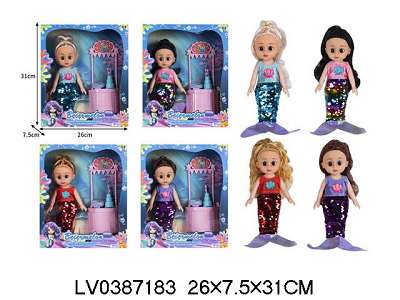 10寸全身搪胶3D眼时尚珠片美人鱼娃娃带配件(带音乐)4款混/包电