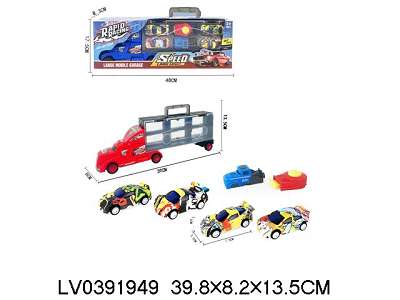 滑行货柜车带4只回力AB涂鸦车+2弹射器 2色
