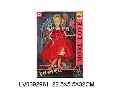 11寸11关节实身彩印眼时尚精美红裙子芭比娃娃+项链