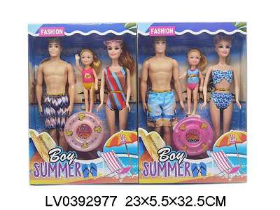 11.5寸实身沙滩公仔套装一家三口带游泳圈