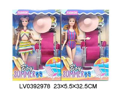 11.5寸9关节实身沙滩公仔带太阳帽防嗮椅子