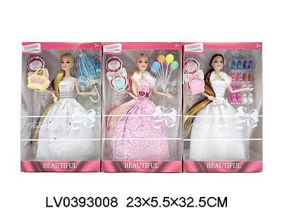 11.5寸9关节实身婚纱长发公仔带饰品套装手提包