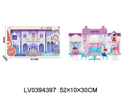 一家四口积木人别墅套装配楼梯 带灯光门铃狗声,不包电