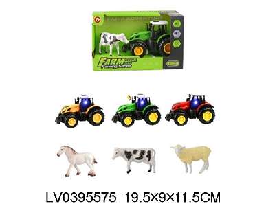 灯光声音惯性农夫车+1动物 3款3色 包电