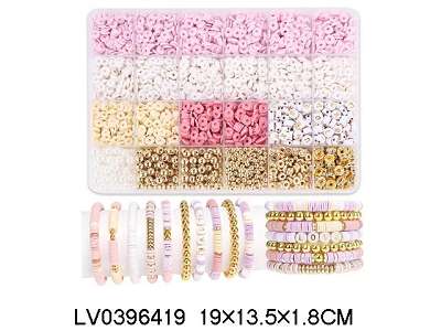4/6mm金珠/珍珠+字母珠+隔珠+软陶片+线 24格