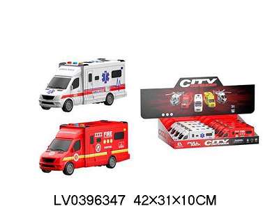 1:20惯性救护车消防车8只装声光 惯性 包电 2色混装