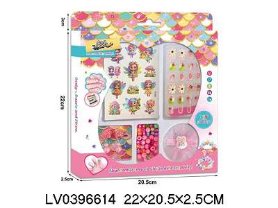 女孩穿戴甲+闪粉纹身贴+甲锉+串珠+耳坠+精美发夹
