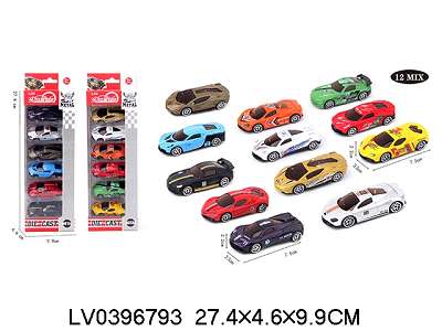 6只装1:64合金滑行跑车12款混