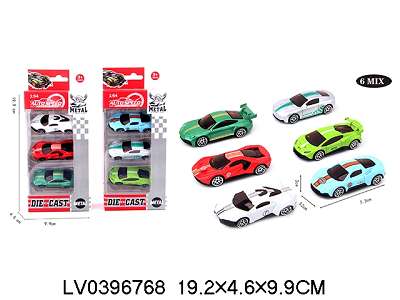 3只装1:64合金滑行跑车6款混