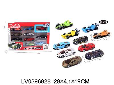 10只装1:64合金FI+合金滑行跑车10款