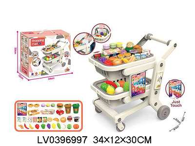 双层万向仿真超市购物车加智能平板 灯光声音不包电 灰色 34pcs
