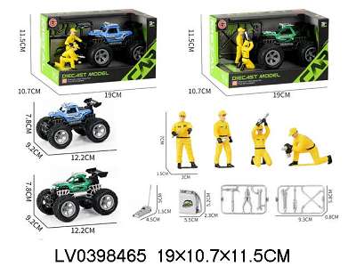 合金惯性骨架越野车+维修工人+工具 2色