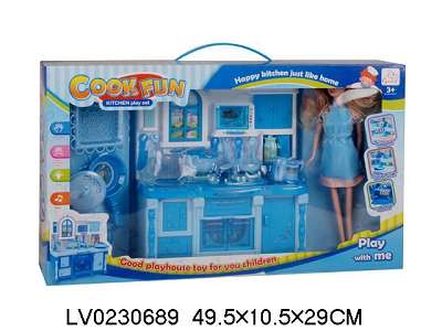 Kitchen Set W/11.5"Solid Doll W/L&S